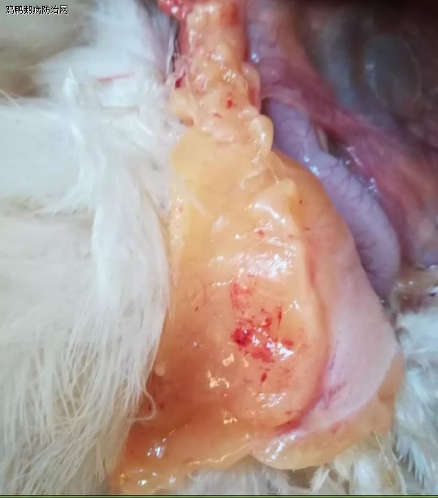 2、保定北:本周肉鸡主要以病毒性疾病继发气囊炎最为多见。蠡县某养殖场饲养杂交肉鸡3万只,27日龄出现釆食量降低,日死亡100只左右,经剖检发现有气囊炎,腹膜炎,气管环状出血,十二指肠出血斑,腺胃乳头出血,肌胃糜烂,肾肿大。治疗方案:上午 驰骋芪贞颗粒+新六甲+好得快+新力爽,下午用驰骋克真霉600斤水连用4天,采食量明显增加,伤亡率显著降低。