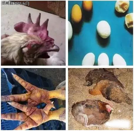 临床症状:呼吸道出现啰音,蔫鸡,拉绿色稀粪,有畸形蛋。
