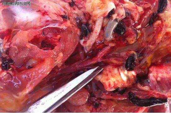 剖检可见鼻道和眶下窦粘膜水肿、充血,喉头和气管内有粘稠的渗出物。病程长的气囊壁增厚混浊,有黄白的干酪样物,严重者可见纤维素性或化脓性肝被膜炎和心包炎。