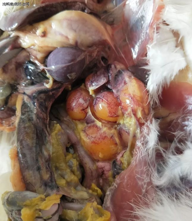 看到图片行业的人第一判断大肠杆菌导致腹膜炎,治疗大肠杆菌反复用药没有效果,死亡数量逐渐增加原因是感冒病毒H5 H7等、病毒下不去细菌是很难控制。