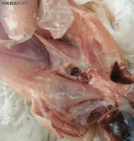 气管、喉头出血、气管出现黄白色干酪物堵塞