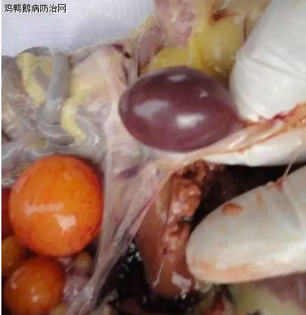 现场共剖检12只死鸡,症状基本一致,主要表现为气管、喉头出血、气管出现黄白色干酪物堵塞、气囊混浊、脾脏肝脏轻微肿大充血,肾脏肿大出血。