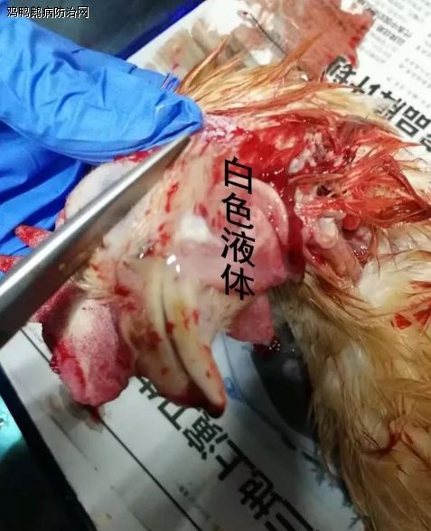 肿头肿脸症状不一定就是鼻炎或是其它疾病混合感染,拿最近病例跟大家探讨,某养殖场产蛋鸡在230日龄左右出现肿头肿脸症状比较严重,其它外观症状不是很明显,发病初期产蛋基本一样没有明显下降,个别鸡冠发紫色、呼噜、鸡冠倒向一侧、发蔫、每天都有新增加的肿头肿脸症状,解剖情况气管出血、肿头肿脸部位剪开有白色或乳白色液体出来,有出现白色干酪样物、十二指肠U型拐弯部位剪开肿胀或出血、卵泡变形成菜花样、泄殖腔弥漫性出血比较典型,腺胃乳头出血等症状。