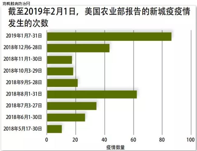 自2018年5月以来,美国农业部(USDA)已经确诊了加利福尼亚州的新城疫强毒株(vND)疫情,包括在圣贝纳迪诺县、河滨县、硌杉矶县发生的数起,以及在文图拉县发生的1起。
