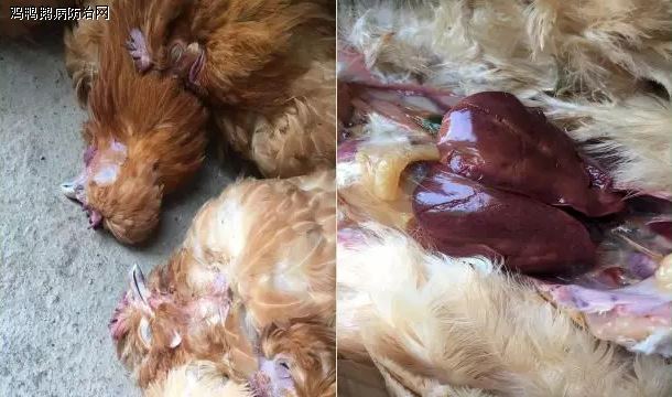 说蛋鸡青年鸡群突然批量死亡,死鸡严重脱水,羽毛潮湿,部分鸡羽毛脱落。皮肤发红,翅下有腐败现象。用过两天治疗葡萄球菌的药物效果一般。经过仔细沟通后得知,死亡鸡只都集中在二层笼内,结合死鸡剖检症状确定鸡群是长时间断水,突然喝大量冷水,导致的死亡。最后建议客户给养殖场使用养殖安+藿香正气口服液,用药四天回访鸡群恢复正常。