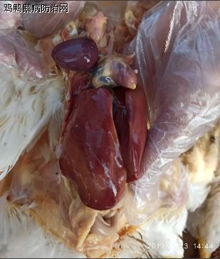 这几个月流行的腺病毒病,主要是包涵体肝炎病例,并且是新毒株D-11在流行;经典包涵体肝炎主要是E-8B毒株感染病例。D-11株新毒株流行特点突出几个方面:一是各种鸡群均有感染,蛋鸡发病率高于E-8B感染病例,500日龄鸡群也有多发;二是经典包涵体肝炎出现的肝脏上密码麻麻出现点和出现斑病变不多见,主要是肝脏肿大、脾脏肿大;三是与淋巴白血病并发率高;四是接触性传播较为突出,见鸡舍局部笼内有鸡只死亡。