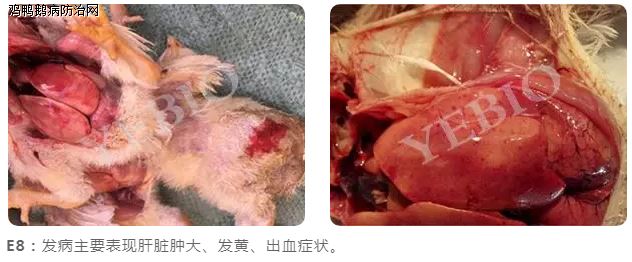 禽I群腺病毒感染品种广,蛋鸡、肉鸡、种鸡等均为主要感染宿主,且目前禽I群腺病毒的发病E8、C4和D11同时存在,所以我们在诊断上要注意区分。
