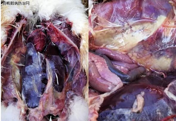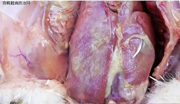 病毒病爆发时必然会引发高烧症状,发病比较急,死亡比较高度,伴随高烧症状时机体组织液和蛋白渗出格外严重,这种渗出往往是先从呼吸道开始出现肺部水肿充血、心包积液增多、包心、气囊浑浊然后发展到包肝最后形成腹膜炎。