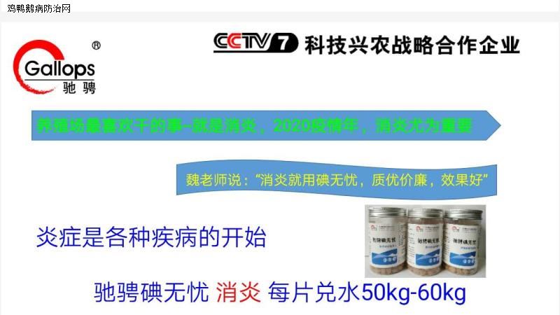 杀毒灭菌、抗炎消炎:用驰骋碘无忧泡腾片就对了✔饮用给药效果好!1片兑水50公斤,精准用药。可有效杀灭病毒(口蹄疫、非洲猪瘟、禽流感、副黏病毒、黄病毒、腺病毒等)、细菌(大肠杆菌、沙门氏菌、禽霍乱、鸭疫巴氏杆菌、葡萄球菌、链球菌等)、支原体等病原体!效果确切!事实胜于雄辩。喷雾消毒、饮水消毒、环境消毒、棚舍消毒、料槽消毒等消毒就用驰骋碘无忧,好用!
