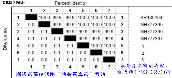 图1 腺病毒与已报道的鸭腺病毒3型毒株核苷酸同源性分析