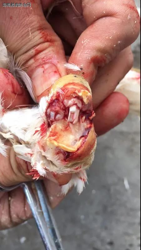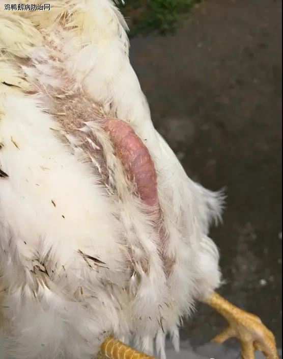 临床上以胸骨弯曲或胸囊肿最早,后边是关节肿大,严重时脚垫肿胀,鸡不能正常行走