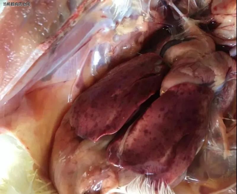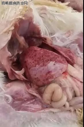 禽副伤寒是由禽沙门氏菌感染发病,急性死亡无肉眼变化,病程长的肝脾充血,有条纹状或针尖状出血,并且有白色点状坏死灶,或肝脏边缘有雪花样的坏死灶。
