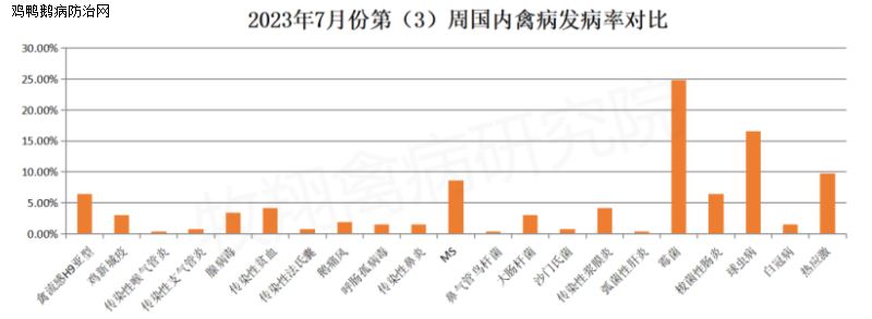本周霉菌性疾病发病率为24.81%,据所有禽病中发病率之首,与上周发病率基本持平。