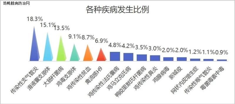 (1)流行疾病中的传支、支原体、大肠杆菌病、浆膜炎、禽流感等在一定时间内仍会维持在较高的发病比例。