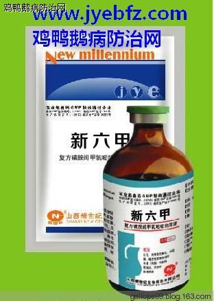 新六甲注射液(磺胺-6-甲氧嘧啶、TMP、青蒿内酯、细胞生成素等组成;PH值为中性)是由驰骋种禽疫病防控技术研究所联合山西新世纪生物制药有限公司研发。