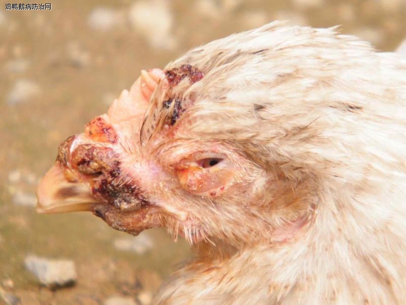 皮肤型鸡痘最常见,典型症状为:鸡冠、肉髯、耳垂、眼睑、嘴角等无羽毛部出现灰白色结节,形成痘性水疱,然后结痂,拨去结痂可见出血的陷凹,结痂自然脱落形成瘢痕。