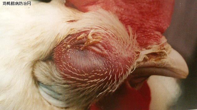 症状:病的损害在鼻腔和鼻窦发生炎症者常仅表现鼻腔流稀薄清液,常不令人注意。一般常见症状为鼻孔先流出清液以后转为浆液粘性分泌物,有时打喷嚏。脸肿胀或显示水肿,眼结膜炎、眼睑肿胀。食欲及饮水减少,或有下痢,体重减轻。病鸡精神沉郁,脸部浮肿,缩头,呆立。仔鸡生长不良,成年母鸡产卵减少;公鸡肉髯常见肿大。如炎症蔓延至下呼吸道,则呼吸困难,病鸡常摇头欲将呼吸道内的粘液排出,并有罗音。咽喉亦可积有分泌物的凝块。最后常窒息而死.