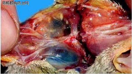 剖检可见,鼻腔和窦黏膜呈急性卡他性炎症,黏膜充血、水肿,表面覆盖有大量黏液,窦腔内积聚多量豆渣样分泌物,卡他性结膜炎,肉髯皮下水肿,严重时可见喉头和气管黏膜潮红,上面附有黏稠性黏液;产蛋鸡输卵管内有黄色干酪样分泌物,卵泡变性、充血、出血,母鸡卵巢萎缩,其他内脏器官没有明显变化,若出现继发感染时,可见相应疾病的病理变化。