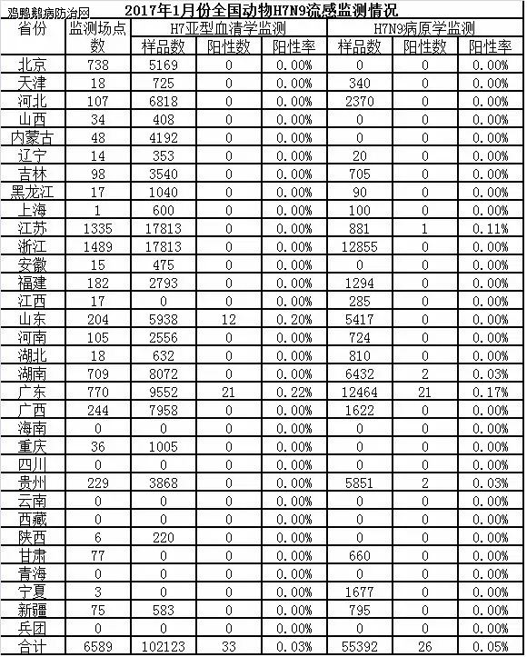 (一)广东省。鸡样品21份,其中20份分别来自佛山市、清远市、潮州市的4个活禽交易市场,1份来自清远市的某养鸡户。
