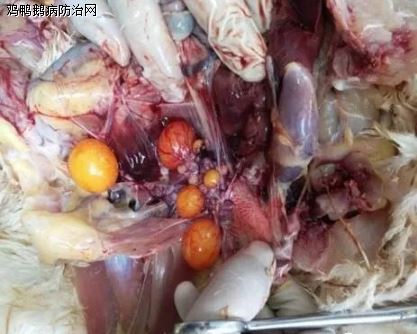 随机剖杀10只活鸡,有2只瘦弱鸡输卵管发育不良,其它鸡输卵管和卵巢发育正常,剖检其它脏器均无明显病变。