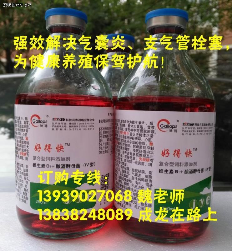 鸡鸭鹅病防治网的驰骋好得快针对这方面疾病经过这两年使用,结合饲养管理的精心配合,效果经得起考验,敏感度高,配合鸡鸭鹅病防治网的泰能或者黄栀口服液,连续使用4-6天,可使鸡群逐步康复,换回损失。如果在通风、温度、温差、湿度上无法满足鸡群需求,再好的药都是无济于事。