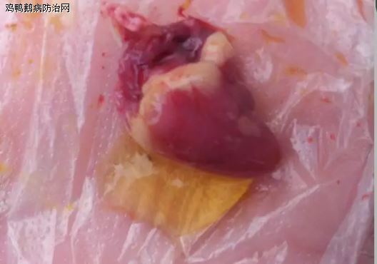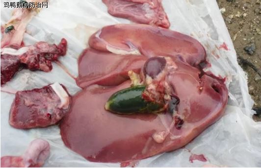 剖检症状为个别鸡心包积液、喉头出血、肝脏肿大出血、脾脏肿大出血、卵泡液化出血、输卵管潮红出血、卵黄性腹膜炎等。