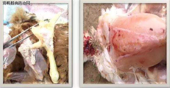 最近,鸡鸭鹅病防治网技术部在豫北某规模化蛋鸡场服务过程中发现,该鸡场80日龄左右鸡群出现龙骨突变形、腿关节异常、行走困难现象,部分病鸡鸡冠呈黄白色,食欲减退。经剖检并通过河南驰骋祥禽病研究所实验室检测确诊为:滑液囊支原体感染(MSI)。
