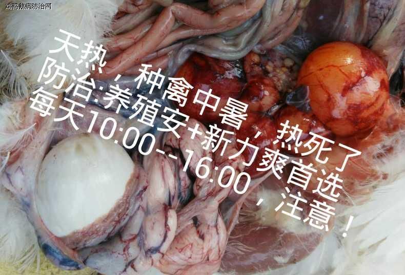 2、药物治疗:根据鸡群症状的严重程度,适当选用抗抗热应激药物“新力爽”或中草药“藿香正气口服液”+“养殖安”治疗