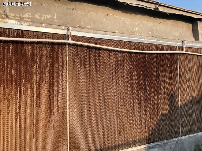 4、 此季节外界湿度低,水帘降温效率极高,全湿的水帘可能会造成鸡舍前端8℃以上的剧烈降温,易造成鸡群感冒。