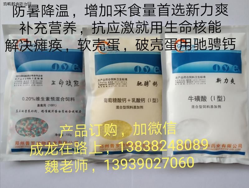 在某些疾病或应激下导致产蛋率低的鸡,也可以使用生命核能200克+新力爽500克饮水1吨和养殖安2包拌料1吨使用10天,提高寡产鸡的产蛋率。