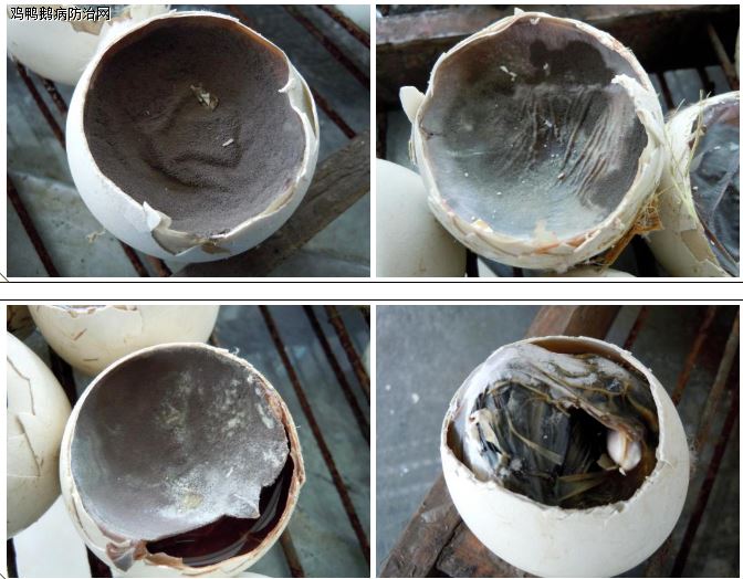 2016年初至2020年5月,广东省清远、肇庆、江门、惠州等地区的大部分种鹅场孵化房鹅胚孵化到15天时,活胚率达80%-85%,但孵化到25-30天时,大部分鹅胚呈现蛋壳颜色变深,甚至变褐色或黑色,有臭味,打开气室和壳膜呈烟雾状,布满暗灰色的霉菌孢子,尿囊液浑浊不清,并混有暗红色的血液;后期胚体呈现头部水肿和出血,卵黄吸收不良和鹅胚发育大小不一;到出雏时,表现啄壳无力或啄壳后到一半便死亡的现象,导致出雏率仅只有20%-50%。给种鹅场养殖户造成巨大的经济损失。