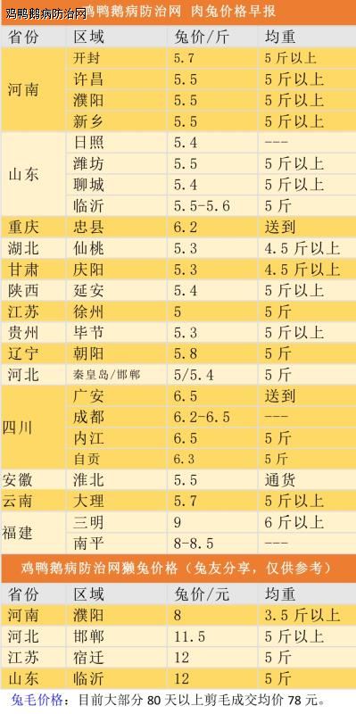 近几天降温持续,希望大家一定要做好兔舍防寒保暖措施,近期兔拉稀腹胀与温度关系最为密切。河南山东部分小幅微涨,大部分地区以稳为主。