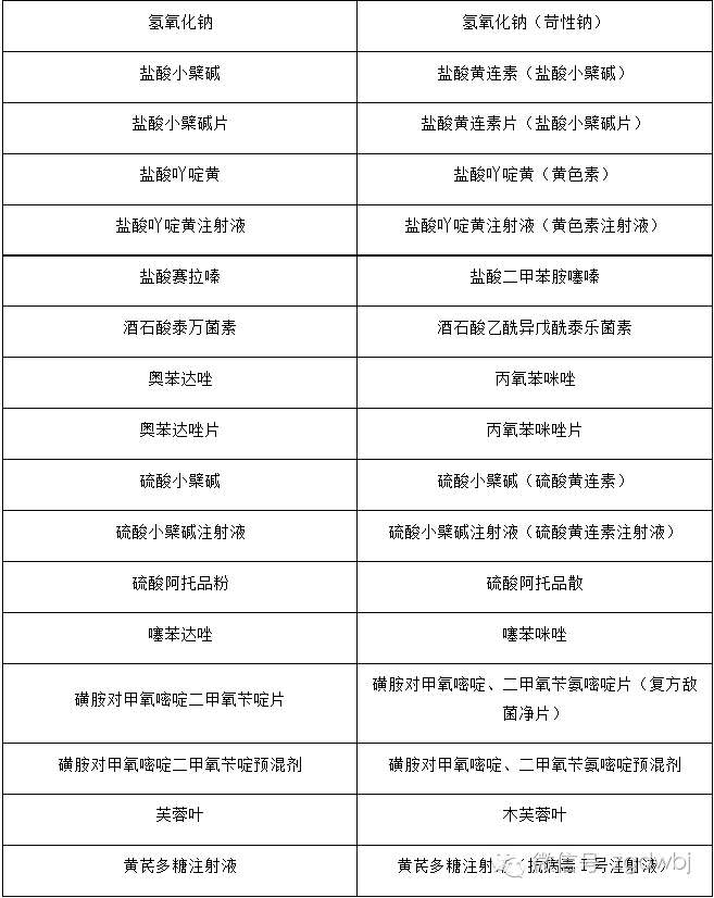 附件:《兽药国家标准》(化学药品、中药卷)第一册采用兽药名称与原药品名称对照表
