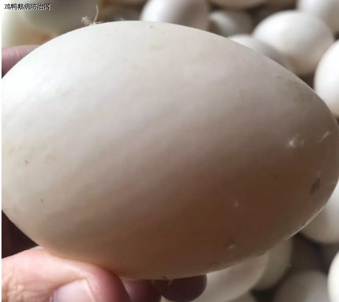 我们再来看种蛋上的螺纹,蛋壳螺纹这说明炎症发生在输卵管末端,鸭蛋个头均匀说明卵巢是没有病变的,我又问了一下:出售出去的种蛋有没有反映出壳率低,养殖场主人说没有影响,这更加确定了卵巢和输卵管上段是没有问题的。