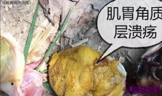 5.饲料霉菌素超标严重者,肌胃角质层易剥离,个别糜烂坏死