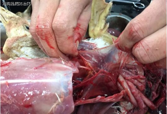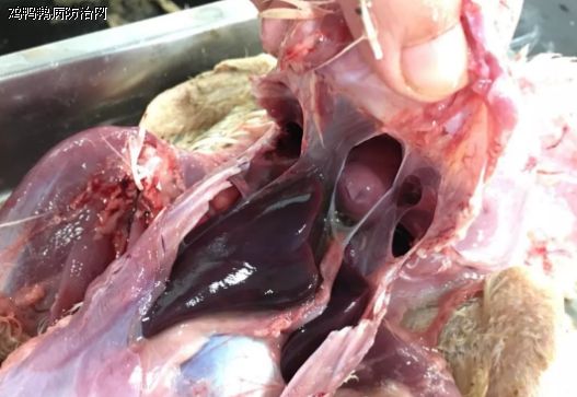 这个鹅场老板很有钻研精神,整个鹅场防疫很认真,各种流感、小鹅瘟、包括副粘病毒都完整防疫,只差一个腺病毒疫苗了,因为他不知道这个病。胸腹腔打开,首先映入我的眼帘的是双侧肝脏酱黑色,胆囊肿大,难道是中毒,不会吧,这么有经验的场长,难道会是药物问题,我带着疑问,进行了“问诊”。