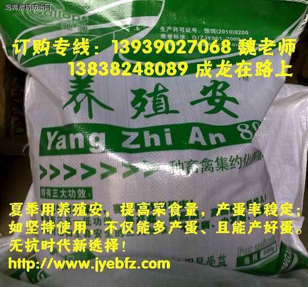 中药汉方+微生物保健---养殖安I(体液酸碱平衡,无抗养殖首选)-高效复方杜仲山楂散+嗜酸乳杆菌+枯草芽孢杆菌+酵母菌(含酵母细胞壁)+益生元 (寡糖),国家一类新型功能性添加剂。家禽根源性保健, 解除肝胆负担,清肝热、解肝毒、舒肝经、养肝血,从而促进肝代谢、促进肝发育、提升肝功能。彻底摆脱肠道疾病的困扰!优化蛋禽产蛋性能,增加蛋重。让鸡鸭鹅变的不再难养!养殖安是畜禽肠道保护专家!养殖安是种禽肠道粘膜吸附剂!养殖安是家禽消化系统疾病全面解决专家!更多使用案例可直接登www.中兽医.com官网进行查阅,养殖安---绿色无抗健康养殖的倡导者;欢迎致电魏老师13939027068,或拨打我们的产品顾问电话13838248089 (成龙),绿色养殖,安心赚钱,用心服务,成就你我!