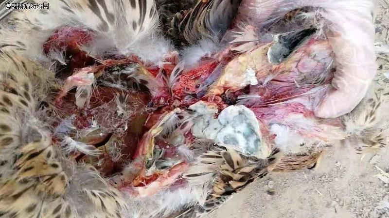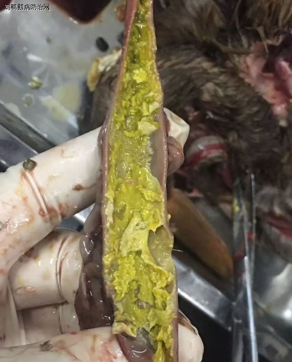近期,鸭大面积流行神经症状明显,解剖症状消化道病变突出,腺胃出血,鸡内金糜烂,十二指肠出现伪膜,盲肠末端出现香肠样软裹体,肝脏损伤严重,卵巢病变严重,卵泡出血,液化,菜花状,输卵管膨大部有明显的浆糊样分泌物质,突出特征性病变,子宫粘膜有明显的出血斑点,心脏肿大,有心肌坏死,脾脏普遍萎缩。肠粘膜,呼吸道,真菌感染明显。