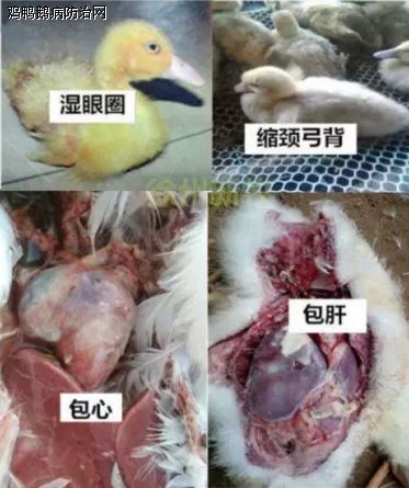 病鸭精神沉郁,食欲下降,体温升高,流眼泪,流鼻液,轻度咳嗽和打喷嚏,淡绿色水样腹泻,行动迟缓,双脚麻痹,头颈后仰,抽搐,休克等,病程长的病鸭生长迟缓,常因眼鼻流出的多量浆液性或黏性分泌物,在眼周围留下一个湿润的污秽圈。