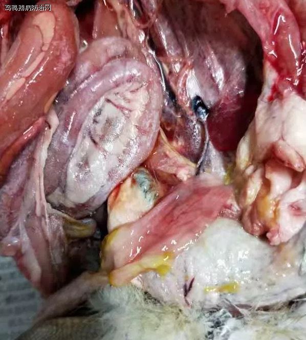 多种疾病混合感染,有流行感冒病毒混合感染症状基本一样,细菌大肠杆菌沙门氏菌浆膜炎支原体等感染出现腹膜炎情况,打开腹腔黄色干酪样物包裹肝脏和心脏、卵泡变形液化等情况。