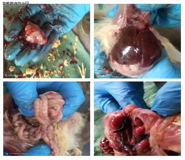 取病死鸡进行解剖观察,主要症状为卵黄吸收不良,心脏出现灰白色结节,肝脏肿大、具有白色坏死灶,肾脏肿大,肠道出现白色结节。