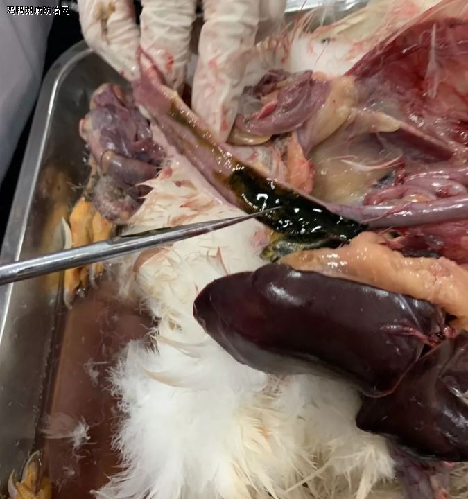 2019年5月23, 实验室接诊一例山东五龙鹅,2000羽,240多天18天前零星伤亡,解剖是蛋子瘟,用药三天,停止伤亡,三天过后,又有伤亡。又拿了五天治肠道和病毒的药,之后还有零星伤亡,解剖疑似有病毒,梭菌,霉菌,然后用病毒药,粘菌素,加地美硝唑一起治疗,连用四天,从最后一次药到现在一共9天,一直有零星伤亡。但从前天(5月21日)开始,死亡增加(以前一天死亡1-2只,现在死亡6-7只),采食量下降,产蛋下降两成。