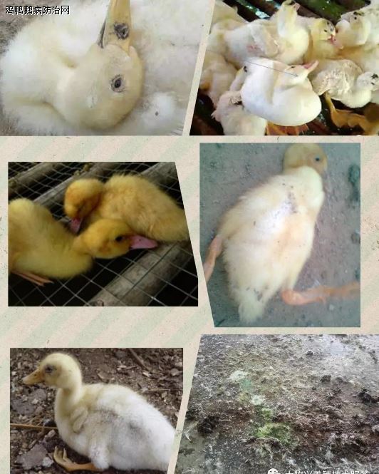 4.日龄较大者(4~7周龄)多呈亚急性或慢性经过。主要表现为缩颈、沉郁、腿软不愿走动、食欲减少,但饮欲增加,伏卧不起。少数病例出现头颈歪斜,遇有惊扰时,不断鸣叫,转圈或倒退,能采食长期存活,但多发育不良,有时易被健鸭践踏、挤压致死。少数病例有呼吸困难,表现张口呼吸。