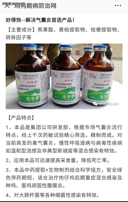 好得快+驰骋芪贞颗粒+新力爽+敏感抗生素,连用4天,4天后不在有死鸡出现,采食量提高恢复正常。