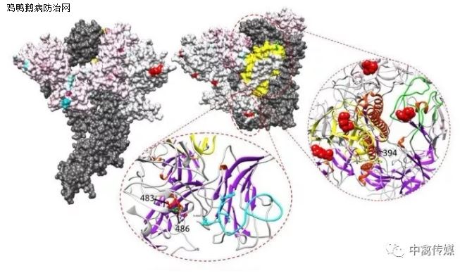 IBV纤突蛋白四维结构,标记数字为突变位点