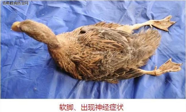 肉鸭:肉鸭感染最早可在20日龄之前发病,以出现神经症状为主要特征,表现站立不稳、倒地不起、翻身打滚、摇头晃脑,病鸭仍有饮食欲,但多数因饮水采食困难,衰竭死亡,死淘率一般在5-30%左右。