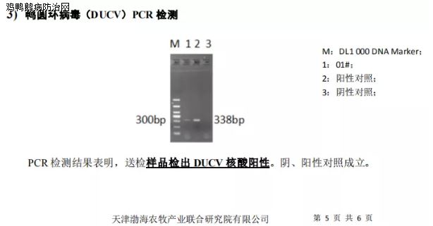 取病死鸭送至实验室进行H9、鸭坦布苏病毒、鸭细小病毒、鸭圆环病毒、浆膜炎、链球菌、大肠杆菌检测,最终检测到鸭圆环病毒和大肠杆菌。
