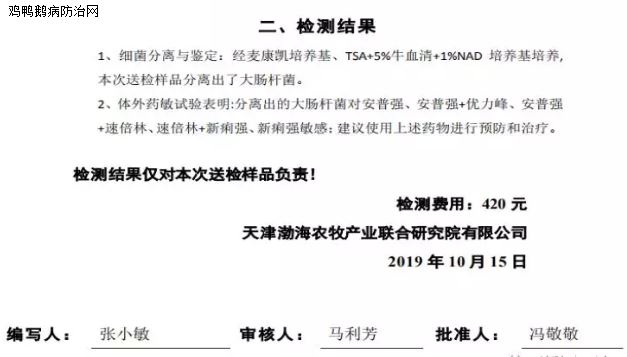2019年10月安徽某集团樱桃谷肉鸭场,由于温差大和管理不当,造成鸭群受凉、高热持续,日死淘增加到1%,采食量增长缓慢,饮水量增加,经过对鸭群临床观察,病死鸭剖检,实验室检测,确诊为鸭圆环病毒与大肠杆菌混合感染。