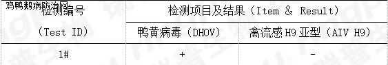 通过RT-PCR的方法检测坦布苏病毒与禽流感H9病毒,结果显示坦布苏病毒阳性。