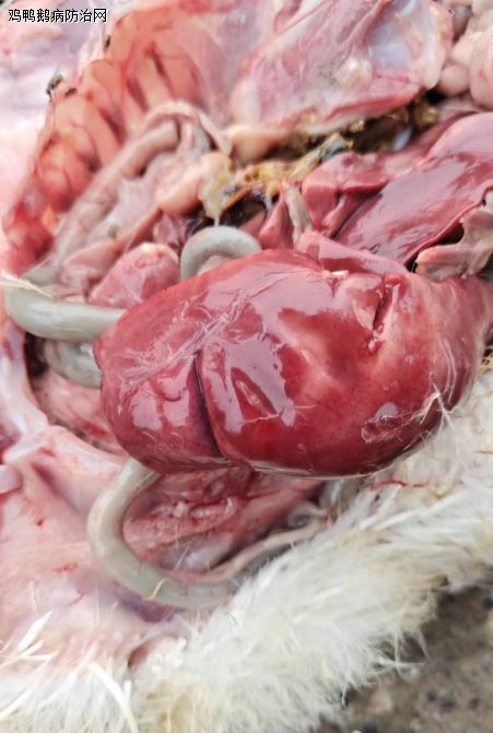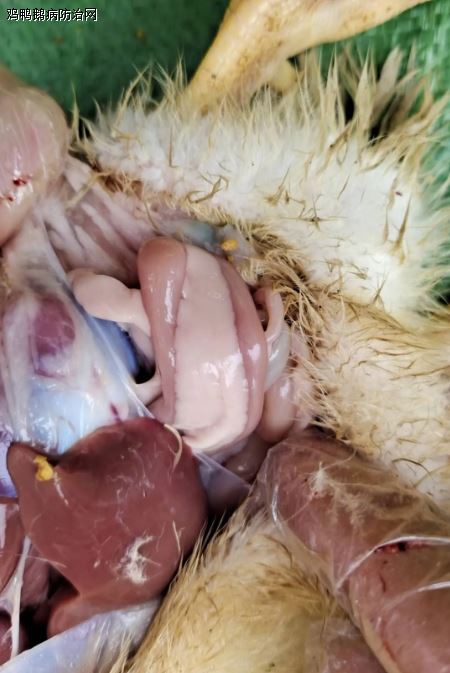 其实根本原因是热天,鸭棚均是比较简易的塑料大棚,最基本的设施水帘都没有,遇到高温高湿,高温使得空气中含氧量降低,高湿水分又占去氧气的空气比例,鸭子没有汗腺,遇到高温有没降温措施,只能大量饮水,水的质量难以保证,小鸭的体温调节有没有健全,就出现典型的无菌性包心包肝病,其实是热应激。